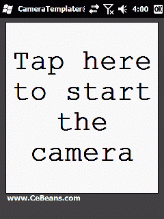 This program can be used to create camera viewfinder overlays. Copy a 24 bit bitmap image (the same size of the display) to the '\CameraTemplater' folder named 'overlay.bmp'. When you tap the button the program will start the camera and display the overlay image while the camera is in picture/video shooting mode.