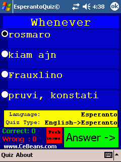 Freeware - Download PocketPC EsperantoQuiz© Now!![]()