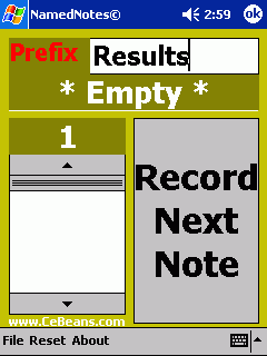 This program allows you to enter a subject name. Then record up to 99 voice notes with the subject name as the prefix. The notes are stored as wav files in the '\NameNotes' folder of your PocketPC.