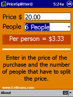 Freeware - Download PocketPC PriceSplitter© Now!![]()