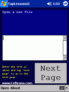 This program can be used to teach a person how to use the PocketPC SIP keyboard. Open a short text file and enter the text line by line. NOTE: You must enter the text exactly to go to the next.