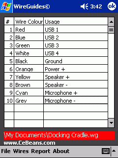 This program can be used as a guide for colour coded wires. Open the 'wire' file to find out what the connectors are for.