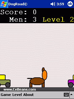 The object of this game is to move your dog and avoid the cars on the road. You get 1 point for each one that passes you. If you get hit by a car then you lose a man.