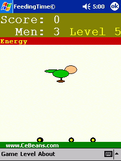 The object of this game is to land and get the bird food. You get 1 point for each one you eat. If you hit a person then you lose a man.