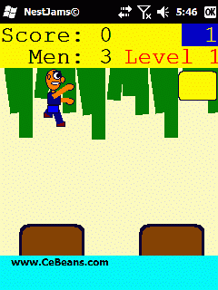 The object of this game is to use your fingers or the joypad and keep on the floating jams while catching the falling eggs from the nest before they hit the ground. You get 10 points for each egg you catch and 100 bonus and next round when you catch all eight. Free man every round after 10.