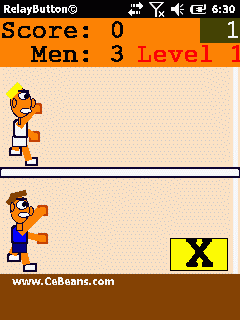 The object of this game is to tap the button as fast as possible and run past the computer player and make it to the finish line first. You can use the onscreen buttons or the joypad left/right to run. You get 100 points and next round when you make it to the end of the track before the computer. You also get 5 bonus points for each foot you are past the computer player. Free man every round after five.