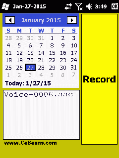 This program is a daily voice AAC-Plus audio note composer that records in high quality wave file format (44Khz/88Kbs) and at the end of the day you can convert the WAV files to compressed AAC-Plus (16Kbs) file format. Select 'Storage Card' on first start-up and the program will create a sub-folder for each day. The program also has a built in ACC-Plus player. The AAC-Plus codec is from 'The 3GPP instrumenting tool' (c)2010 Tipok