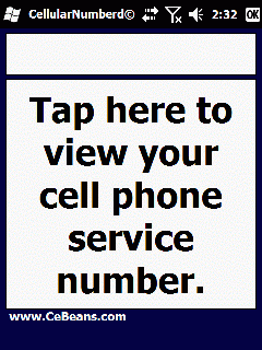 This program queries your GSM SIM modem to find out your cell phone number settings. Simply tap the button and the program will display your cell number assigned to you by the cell phone network. NOTE: This number is the number assigned to you by your cell company and cannot be changed.