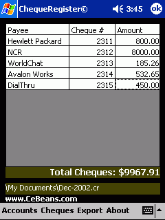 Freeware - Download PocketPC ChequeRegister© Now!![]()