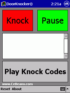 This program allows you to enter in your code for your door. When you enter in the code tap the 'knock' button to play it back.