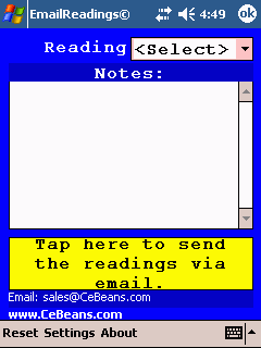 This program allows you to send 'readings' via email. You can use this if you have to take constant readings. The program sends the readings via email.