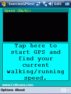 This program uses the GPS on your PocketPC to graphically display your walking/running/riding speed on a moving graph. You can use this to keep your exercise pace. NOTE: The program does not display/graph 0 speeds.