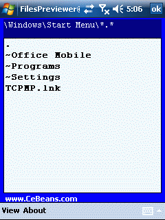 This program allows you to pan the file folders on your PocketPC for *any* type of file extension. eg. Windows short cut. Then you can preview the file in text.