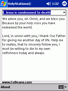 This program is a database of the 12 stations of the cross. Select the station number from the top to view a short prayer for it.
