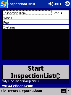 This program allows you to compose an inspection list. When you do the inspection simply move the joypad left/right to verify that the item was inspected.