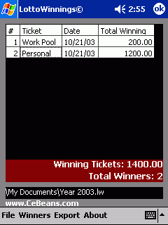 Freeware - Download PocketPC LottoWinnings© Now!![]()