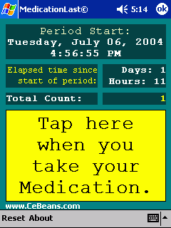 This program can be used to keep track of the last time you took your medication(s). Select 'reset' from the toolbar when you take your medications.