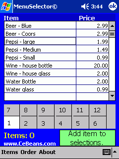 This program allows you to build a 'menu' customers can select the items that they want and return the unit back to you. Tap on 'view order' on the tool bar to see the order.