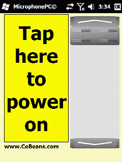 This program converts your PocketPC into a microphone for your desktop PC computer. Connect the speaker input jack the headphone jack and tap the button to enable the microphone. The program also has a slider that you can use to adjust the power out level of the amplifier. NOTE: Make sure your PC speaker input is compatible with your headphone jack.