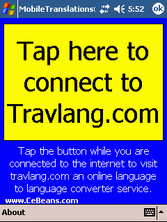 This program connects you to www.Travlang.com an online translation service that converts to<->from several different languages. NOTE: You need an internet connection to use this program.