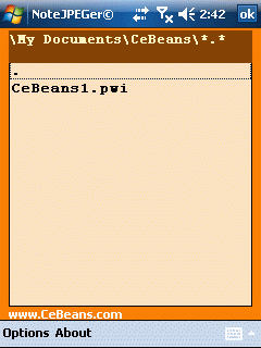 This program allows you to convert drawing/text notes on your PocketPC into customized JPEG images. Use the file explorer to browse the storage folders of your PocketPC for note files. Tap on the note file to convert it to a JPEG image. You can also preview the JPEGs in your picture viewer. The JPEG libraries are from Independent JPEG Group.