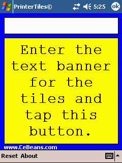 This program allows you to enter a short text banner and converts it to 1 letter per page banner tiles. NOTE: Use courier new font to view/print.