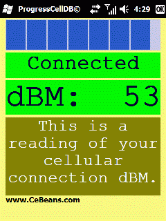 This program graphically displays your GSM cell phone tower connection and reports the connection strength in dBM. Simply start the program and the program will monitor your cellular connection and report the range in real time.