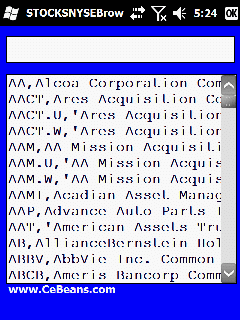 This is a browseable stock ticker database of 2,881 tickers on the NYSE. Simply enter the start of th ticker symbol and the program will display the the tickers.