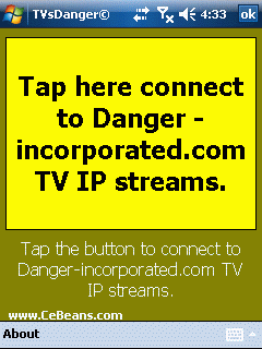 This program connects you to the mobile version of www.Danger-Incorporated.com Tap the button while connected to the internet to tune into TV IP.