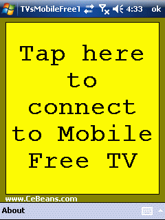 This program connects you to www.MobileFree.tv mobile TV tuner page. Tap the button while connected to the internet to tune into TV IP. NOTE: You need and iPAQ with the streaming media player to view these videos. This service is provided by www.MobileFree.tv